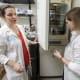 Dr. Chetta looks at breast milk samples in Dr. Engevik's lab.